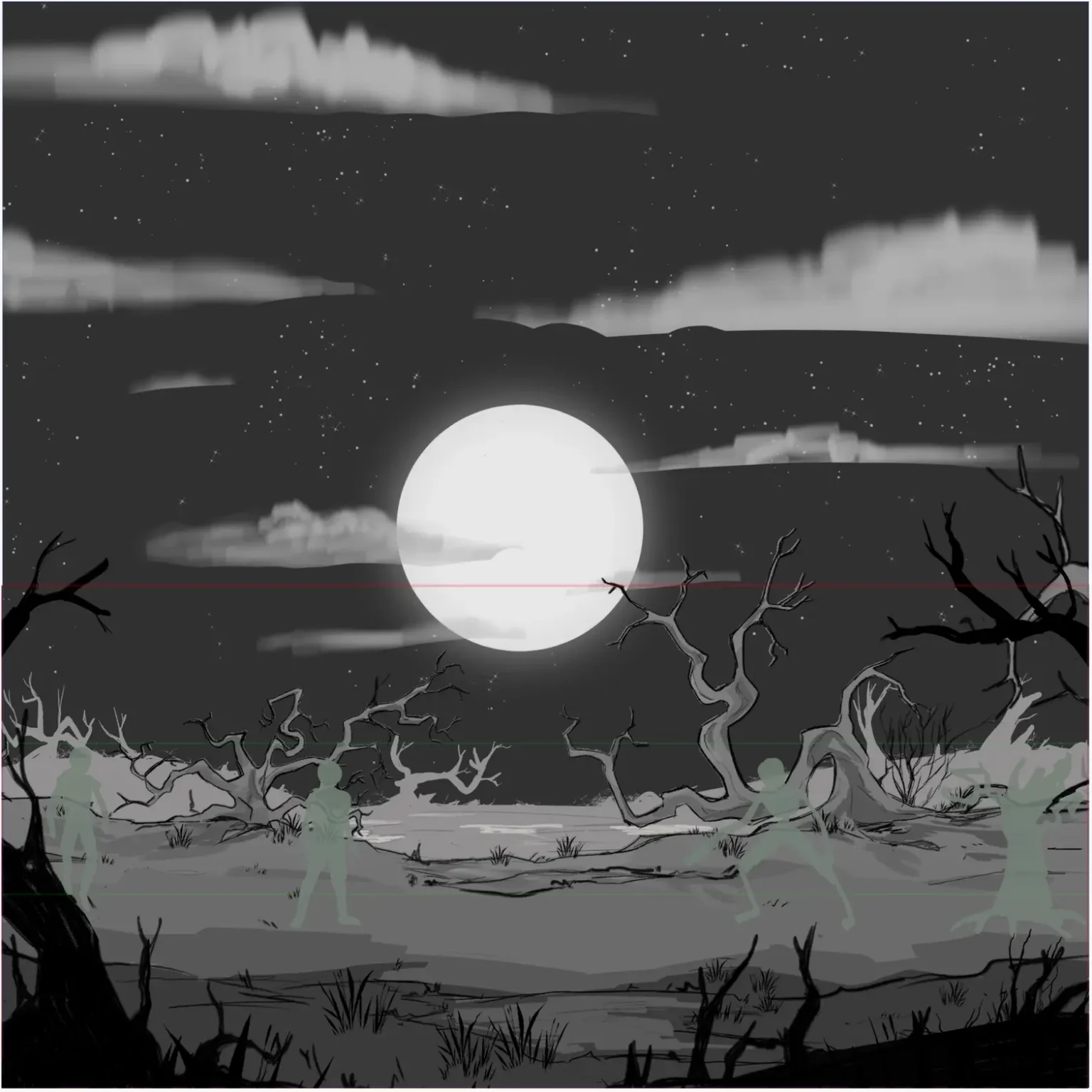 Another part of my work was designing creatures and enemies that the player will face throughout the game. This again included drawing the game sprites and then animating the creatures using Unity’s 2D rigging feature. I also got to experiment with some frame-by-frame animations for a few creatures and VFX materials.